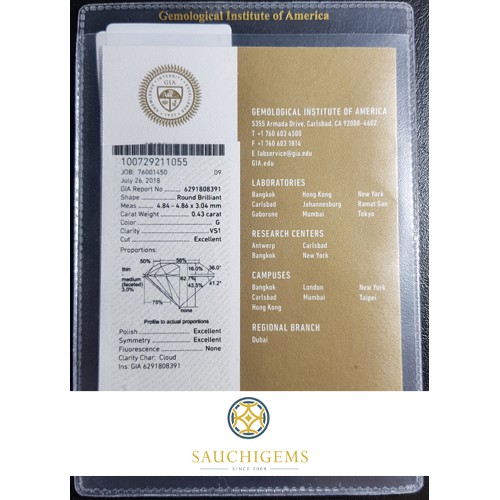 Sg 101 Perfect Cut Round Diamond Heart And Arrow 0 43 Carat Gia